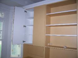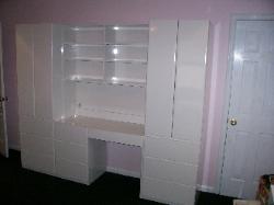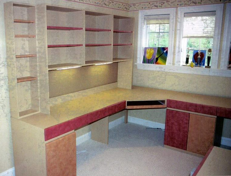 Theater Units, Custom Built Cabinets, Matching Formica, Rooms Plus, Atlantic Furniture, Bookcase, Hutch, Hutches, Wall mounted hutches, Thermofoil, Crown Molding, Office Areas, Real Estate